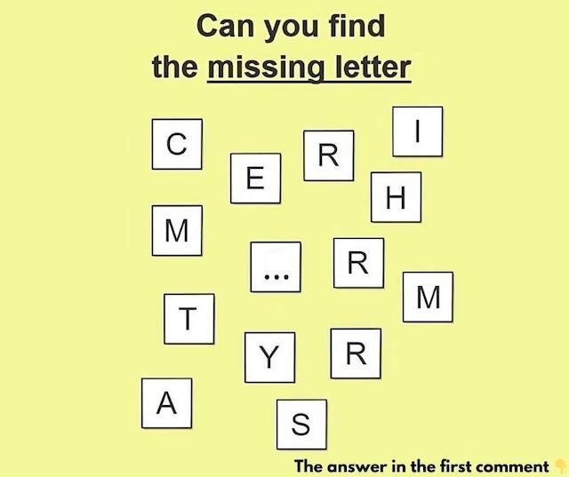 Think you’re good at solving riddles? Here’s a challenge that will test your logic and observation skills! The letters in the puzzle form a well-known festive phrase, but one important piece is missing. Can you find the missing letter and complete the puzzle? Many people overlook the obvious because they focus on the wrong details. Are you up for the challenge? Share your answer in the comments and see how you compare to others! Dive in, solve the riddle, and flex your brain muscles!