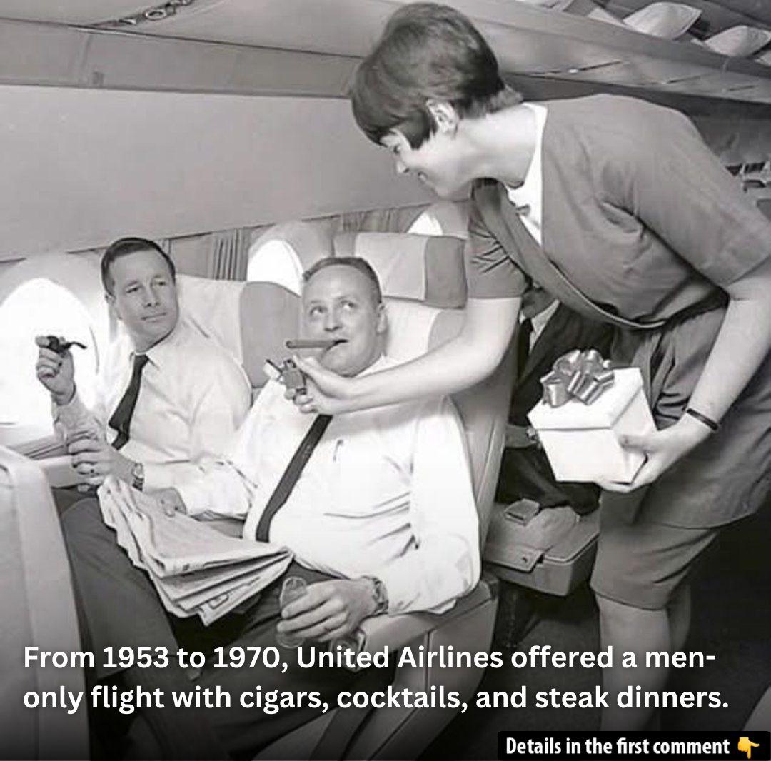 Discover the fascinating history behind United Airlines’ men-only flights – cigars, cocktails, and steak dinners await in this captivating video!